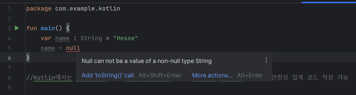 //Kotlin에서는 Runtime이 아닌 compiletime에 Null check를 함으로써 조금 더 안정성 있게 코드 작성 가능728x90
