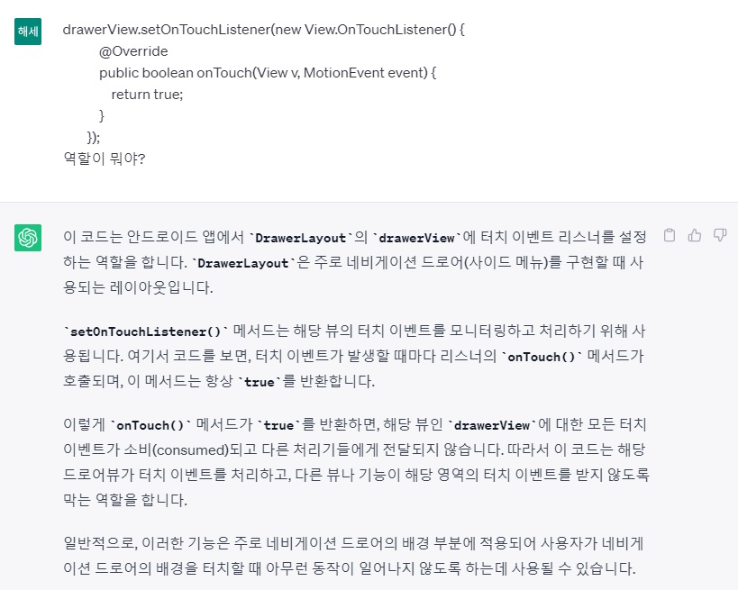 drawerView.setOnTouchListener(new View.OnTouchListener() { //**