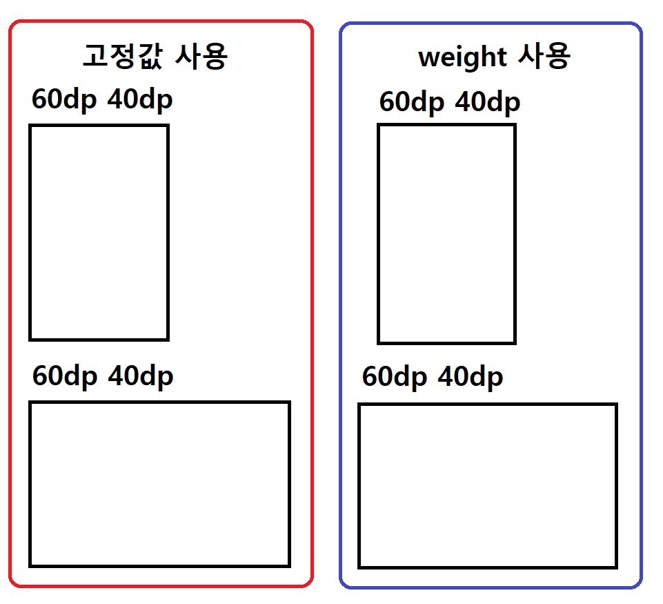 ImageView, textView 두 항목을 60dp, 40dp로 사용하였을 때 원래 화면이 넓다면