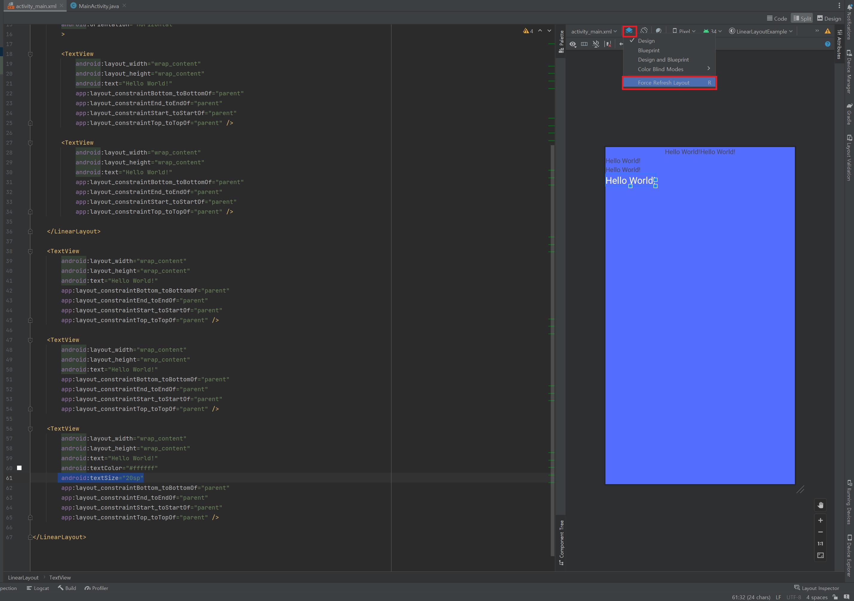 레이아웃이 변경이 원활하게 이루어지지 않을 때는 Force Refresh Layout 버튼을 통해 재구성 할수 있다. (단축키 R)