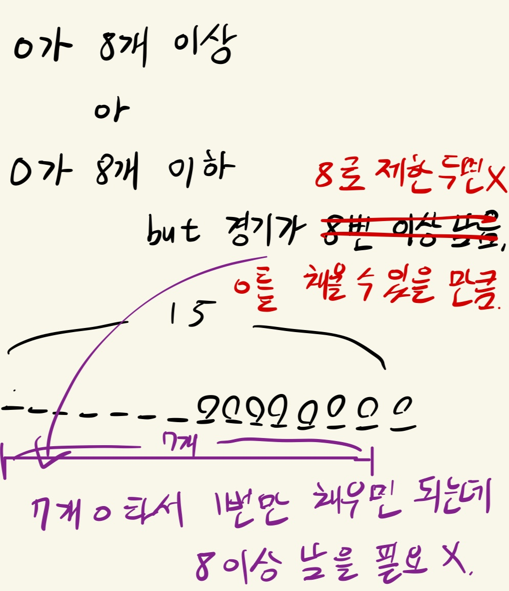 if (sum >= 8 || 15 - str.length() >= 8 - sum) { // 남은 경기 수가 채울 수 있을 만큼 남으면