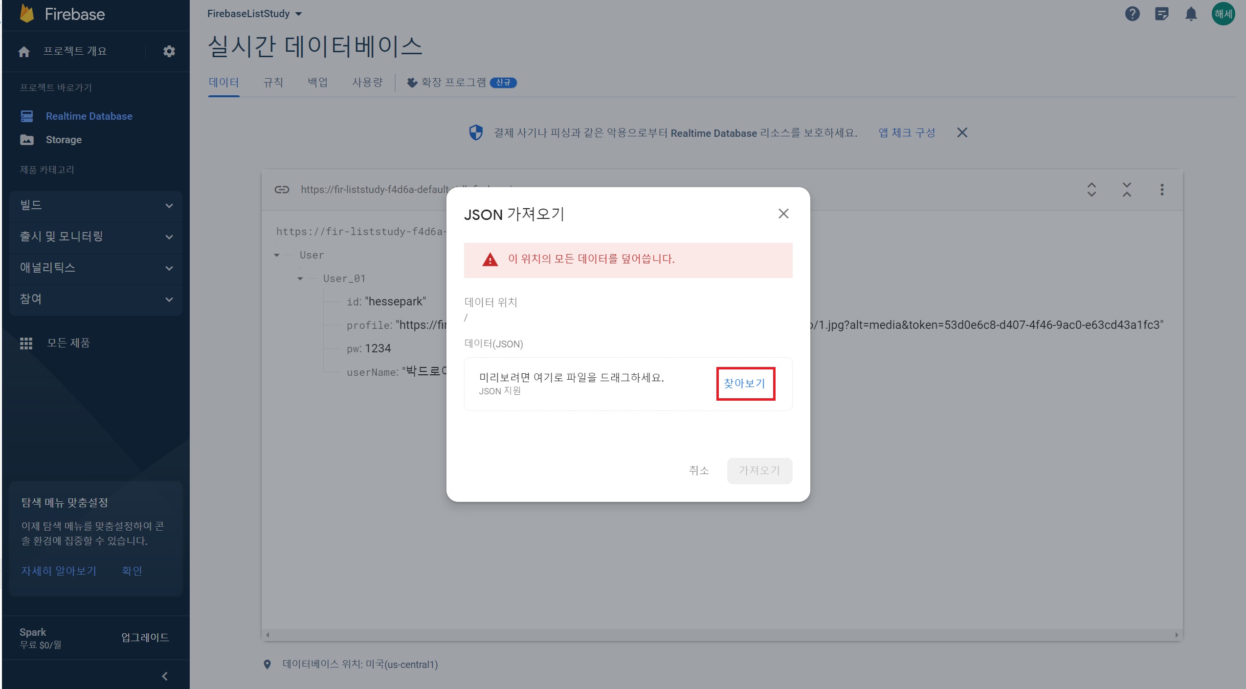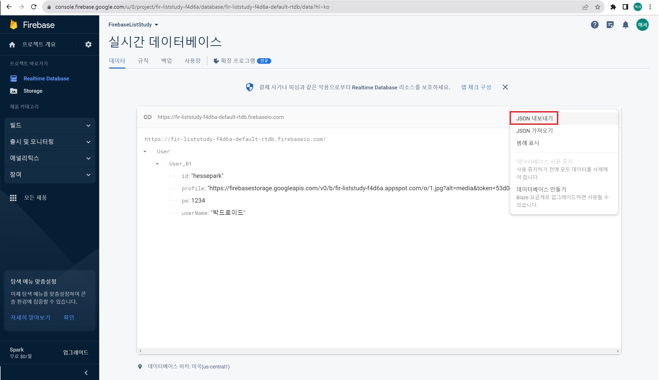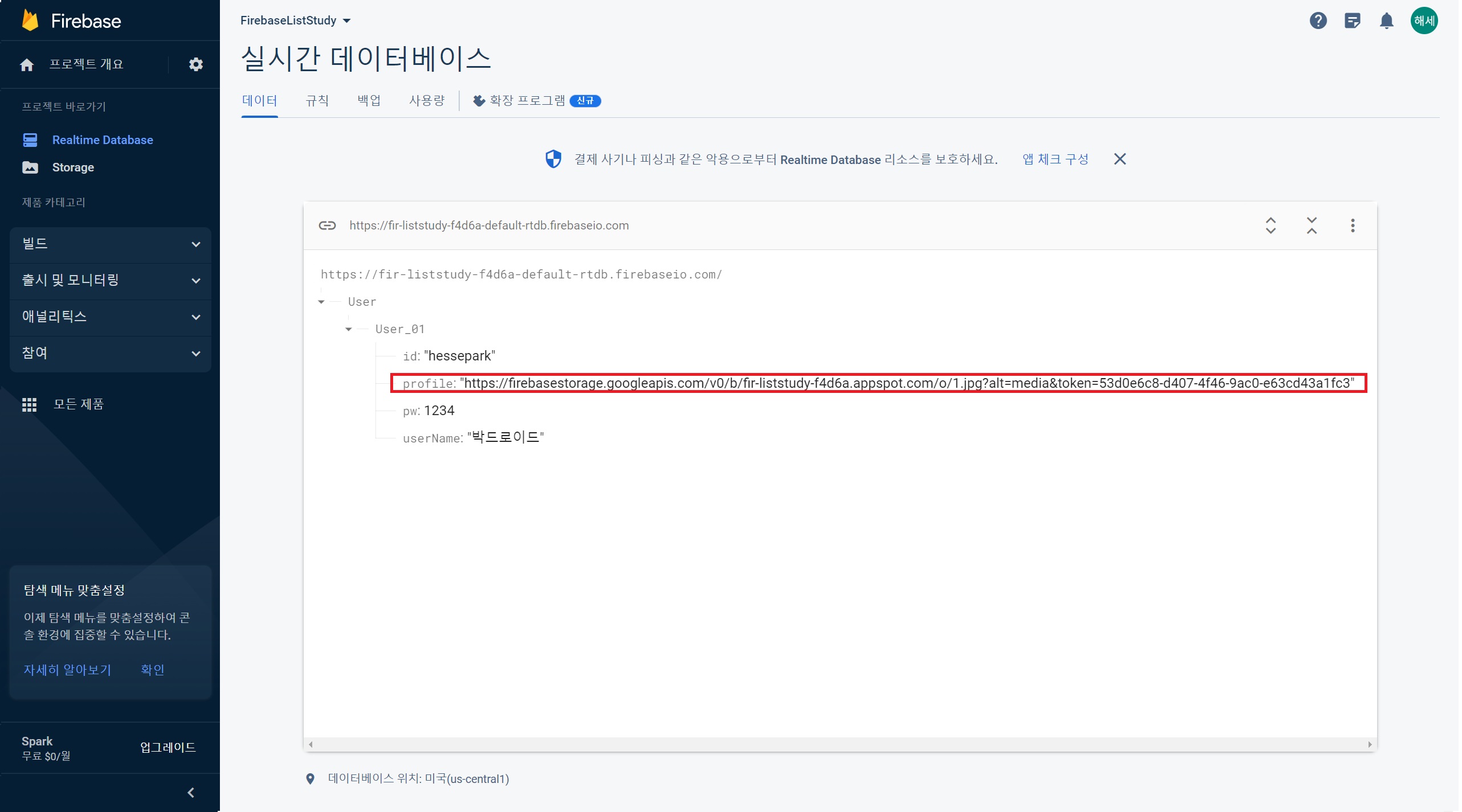 Realtime Database로 돌아온 후 profile 만들어서 붙여넣기
