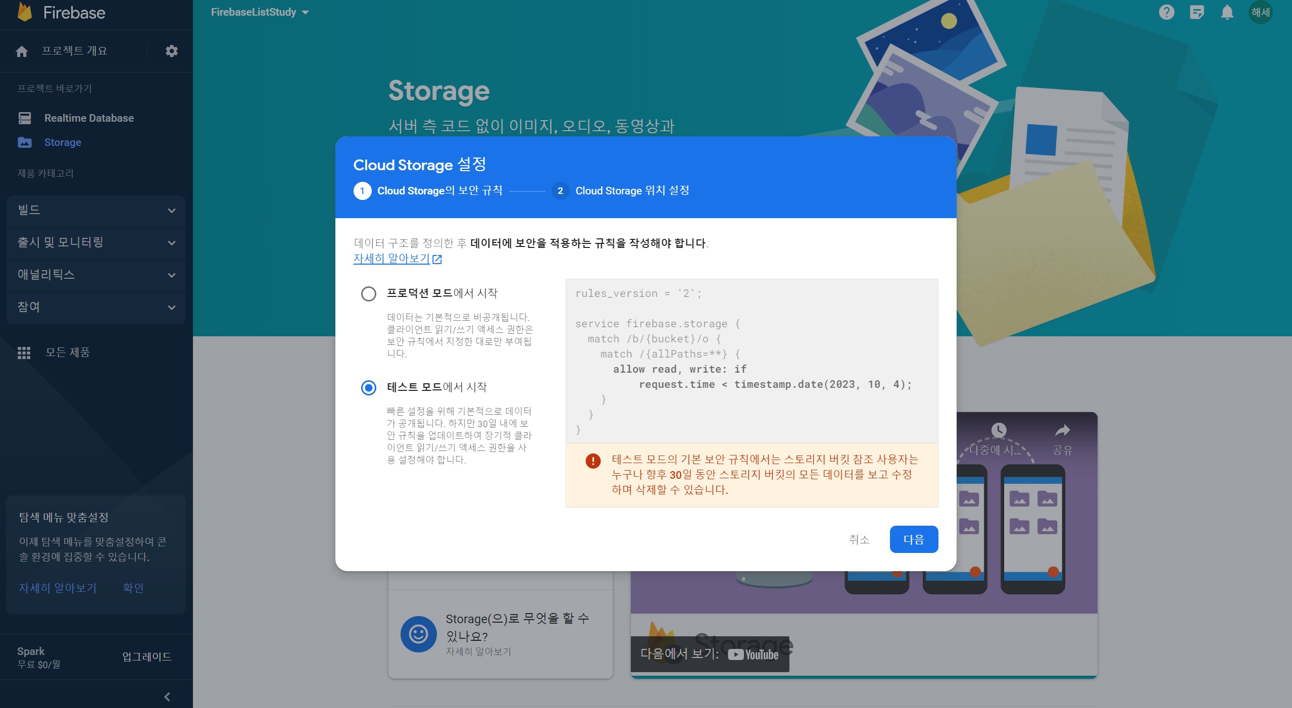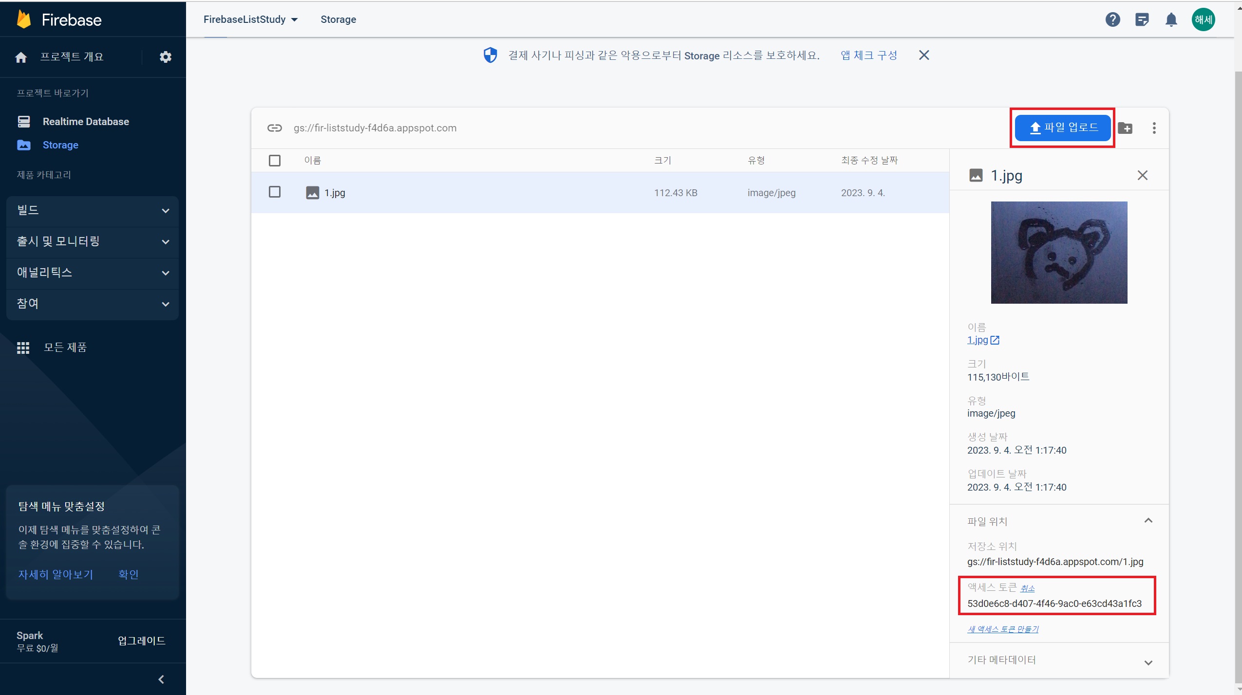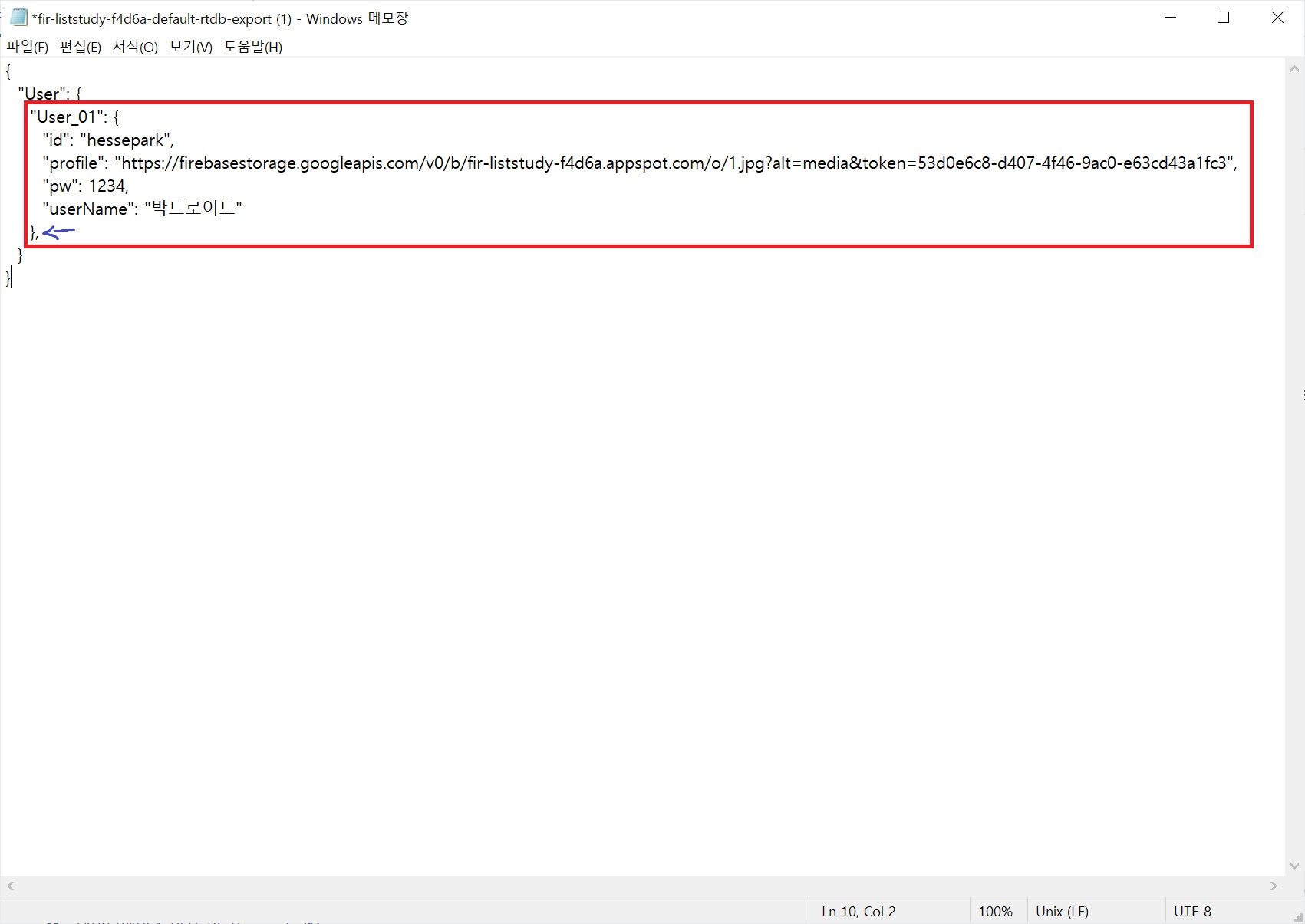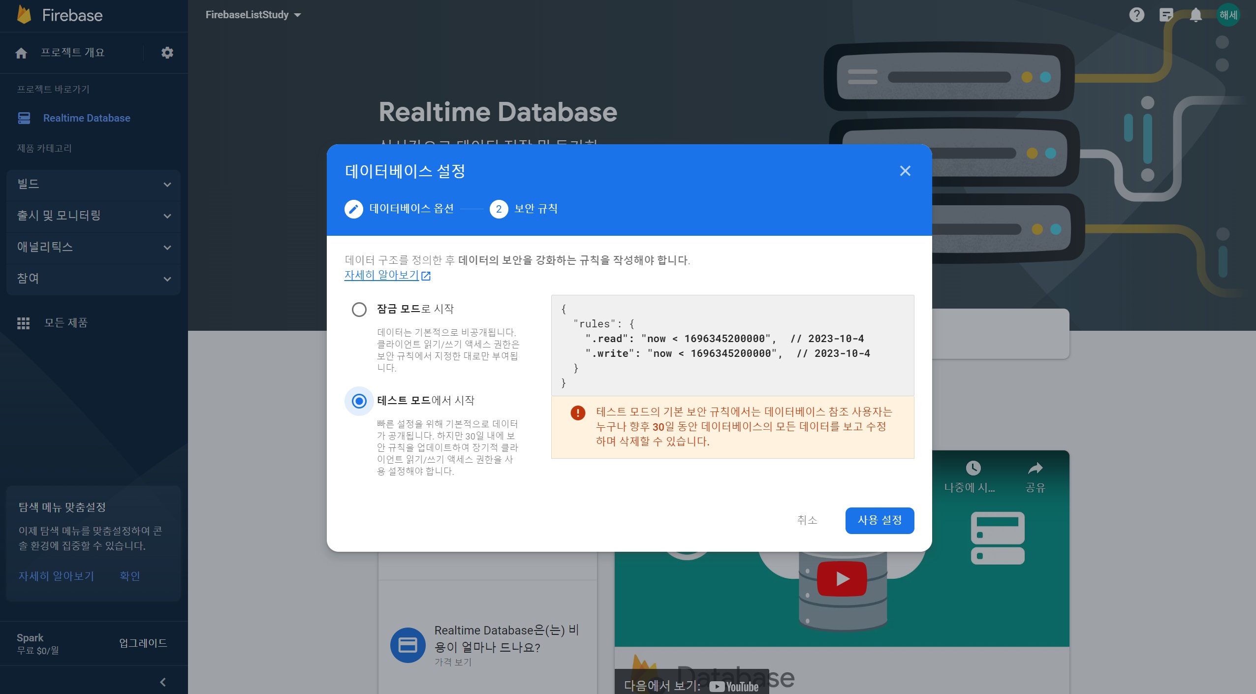 Realtime Database로 돌아온 후 profile 만들어서 붙여넣기