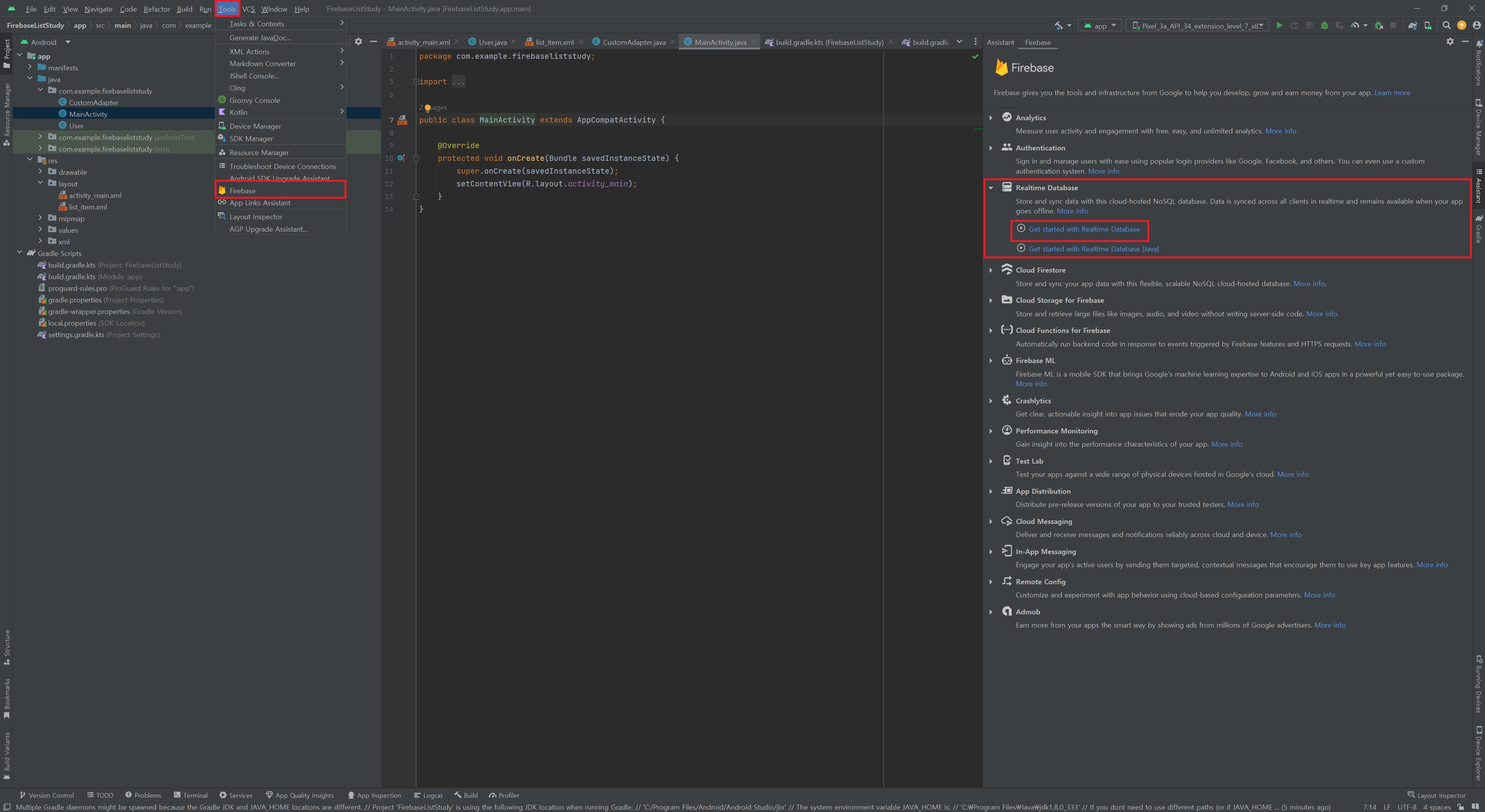 database = FirebaseDatabase.getInstance(); // 파이어베이스 데이터베이스 연동